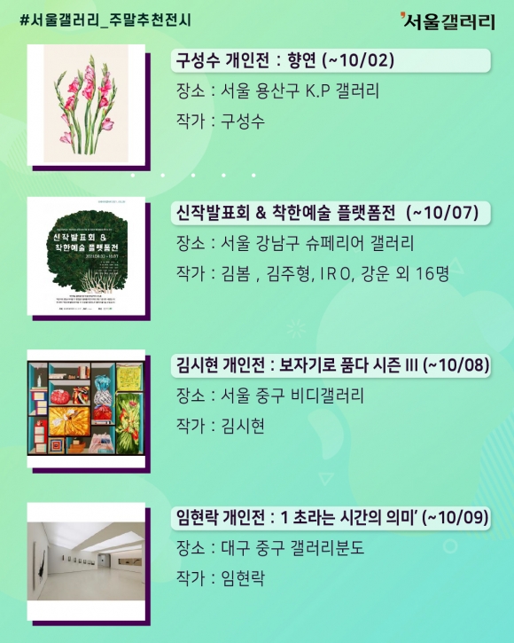 미술전문 아트플랫폼 서울갤러리에서 추석연휴를 맞아 가볼 만한 전국의 미술 전시정보를 소개한다.