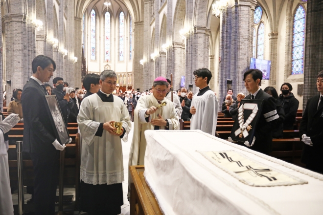 정 대주교는 “고인은 영화 작품을 통해 신앙과 삶의 가치를 드러냈을 뿐 아니라, 생명위원회와 ‘바보의나눔’ 등 교회의 다양한 활동에도 적극 참여하며 나눔과 책임의 삶을 실천했다”며 “그의 신앙은 신자가 아닌 이들에게도 인간 존중과 따뜻한 품위를 깊이 새겨주었다”고 말했다.